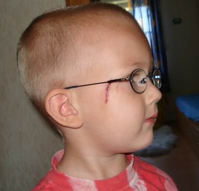 Mal wieder Futter für meine Beulengalerie: so schön kann einem das Brillengestell das Gesicht zerschneiden wenn man nur blöd genug drauffällt...